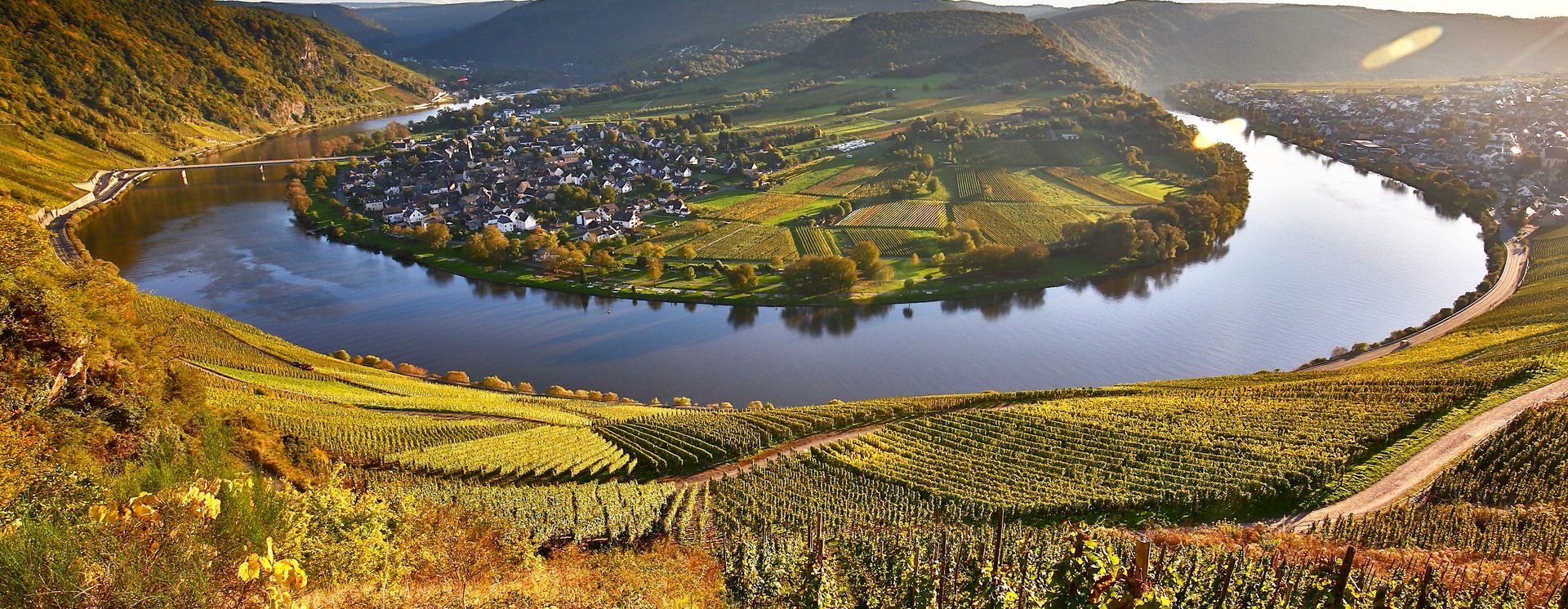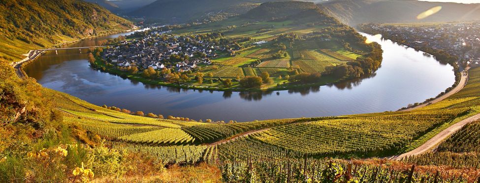 La région de la Moselle se situe dans le Land de Rhénanie-Palatinat, à l'ouest de l'Allemagne. La Moselle serpente le long des petits villages à travers le Land. La rivière qui trouve son origine en France passe par le Luxembourg et se faufile entre Trèves et Coblence, où elle se jette dans le Rhin. Le paysage montagneux s'étend tout autour avec de nombreux vignobles qui caractérisent la région. Lors de votre voyage, découvrez la région de la Moselle, sa nature enchanteresse et ses eaux calmes.