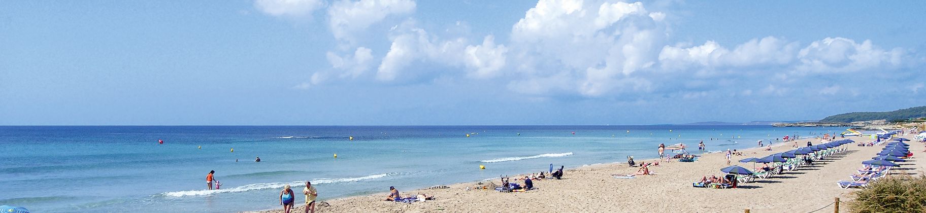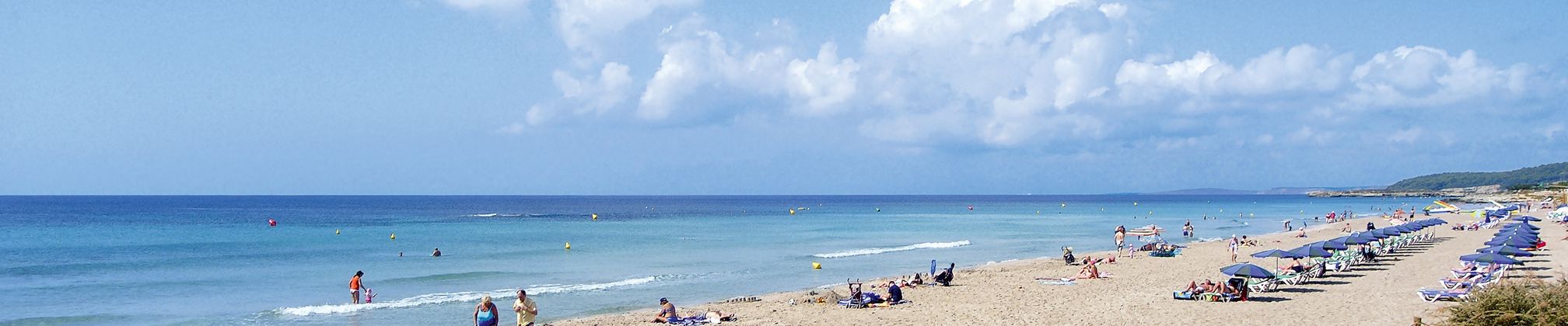 Playa de Son Bou, la plus longue plage de sable de l’île (3 km) convient bien aux enfants du fait de sa pente douce.