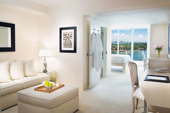 Pool View: grandes et lumineuses; avec salle de bain ayant baignoire et WC, autre salle de bain avec douche et WC, lit Kingsize, divan-lit, téléphone, TV, station d'accueil iPod, réfrigérateur, bouilloire, fer et planche à repasser, coffre-fort, balcon et vue sur la piscine, l'Intracostal Waterway ou la Biscayne Bay. Partial Ocean View: certaines seulement avec bain, mais avec vue mer latérale. Ocean Front: comme l'Ocean View, mais avec une vue superbe sur l'Atlantique.