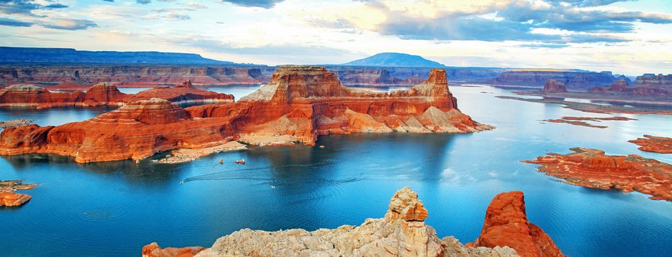 Le lac artificiel entre Utah et Arizona a été créé par le barrage sur le Colorado à l'est du Grand Canyon. Avec de nombreuses offres de loisirs aux bords du lac et les curiosités des environs, le lac Powell est une destination de vacances appréciée.
