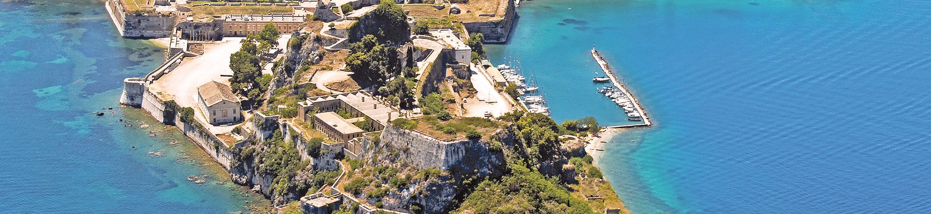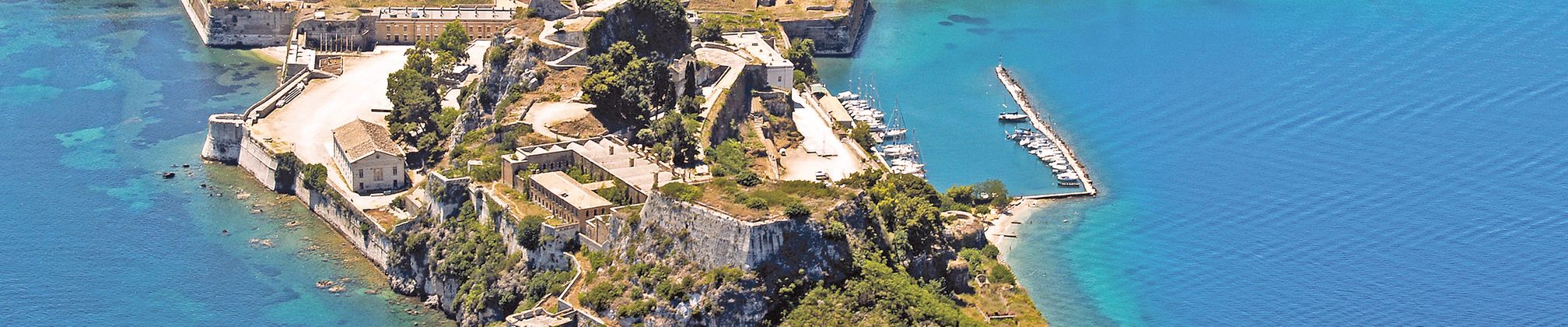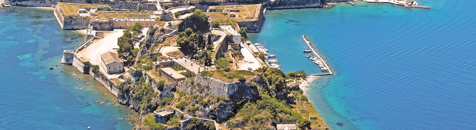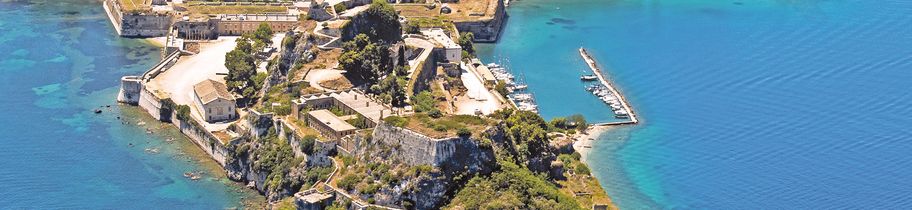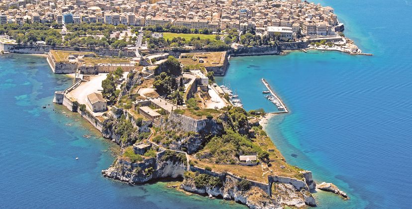 Kerkira (Corfou), la ville a connu un passé mouvementé qui se reflète dans ses bâtiments, comme le chlore, par exemple, la forteresse vénitienne ou les ruelles de la vieille ville de style italien.