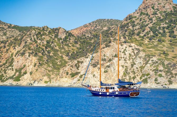 2: Cos–Leros Petit déjeuner à bord. Ensuite, brève réunion avec le capitaine pour discuter de l'itinéraire et du service à bord. Départ pour Vathi Bay, sur l'île de Pserimos. Baignade, puis déjeuner sur le bateau. Continuation jusqu'à l'île de Leros. Temps libre pour faire des découvertes et nuit à bord.