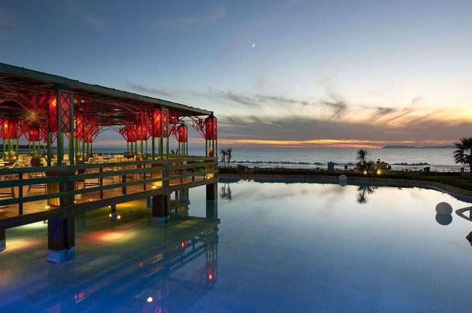 Hall de réception et wifi gratuit. Restaurant-buffet principal international. Restaurant gastronomique méditerranéen qui propose des fruits de mer frais, restaurant à la carte italien. Restaurant de plage servant des fruits de mer et taverne grecque traditionnelle. Snack-bar, autres bars dont quatre de piscine, bar de plage. Salon de coiffure, supérette et boutique de souvenirs. Quatre piscines accueillantes. Chaises longues et parasols gratuits aux piscines et à la plage. Gazebos payants.