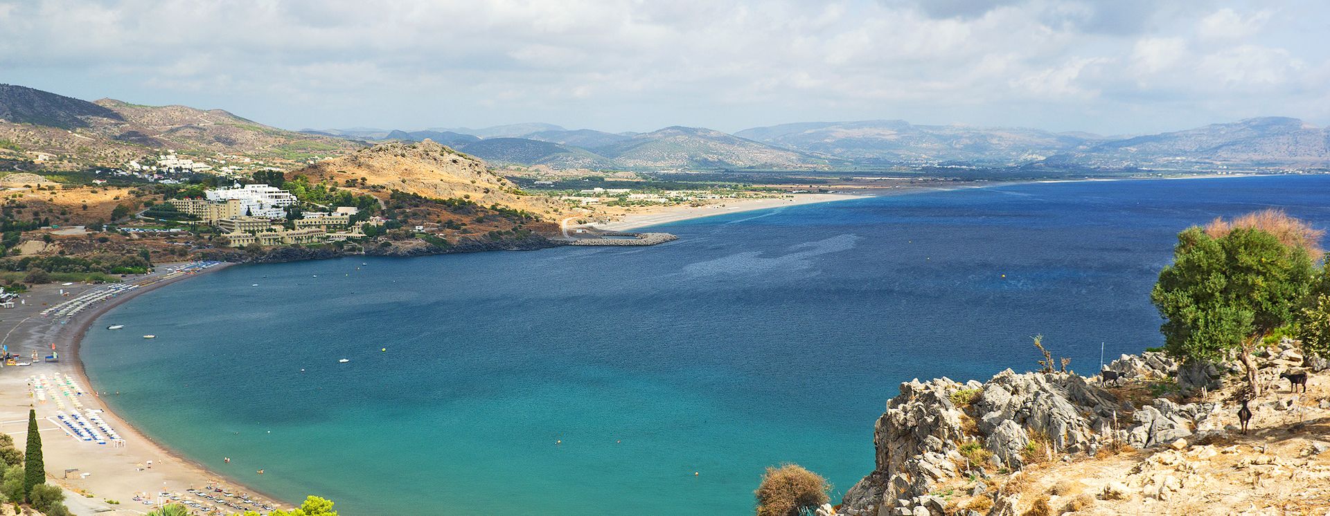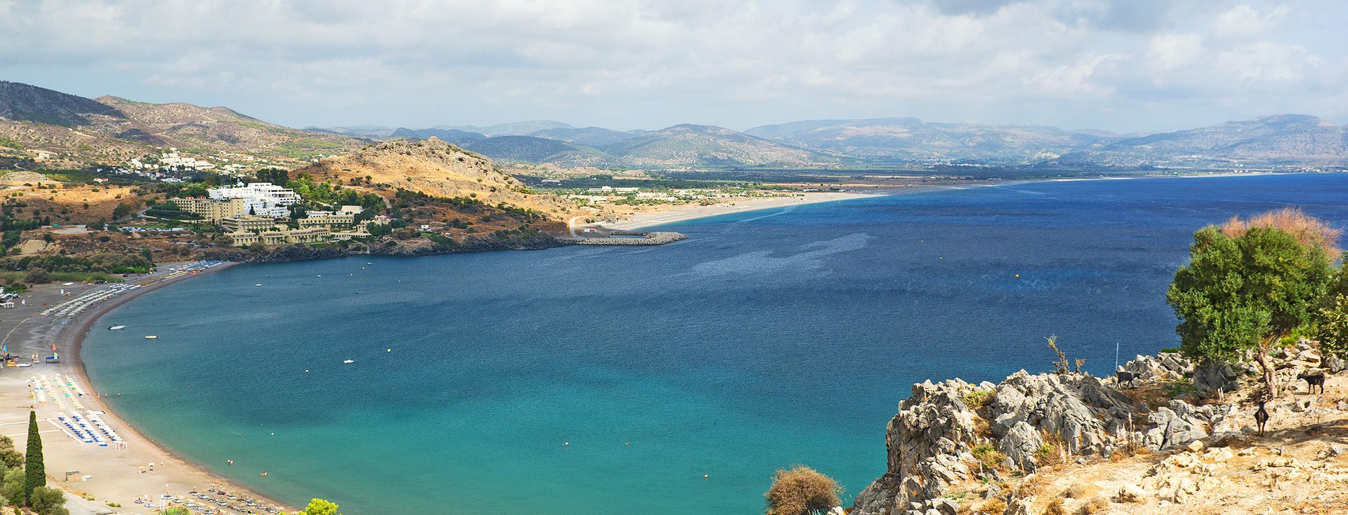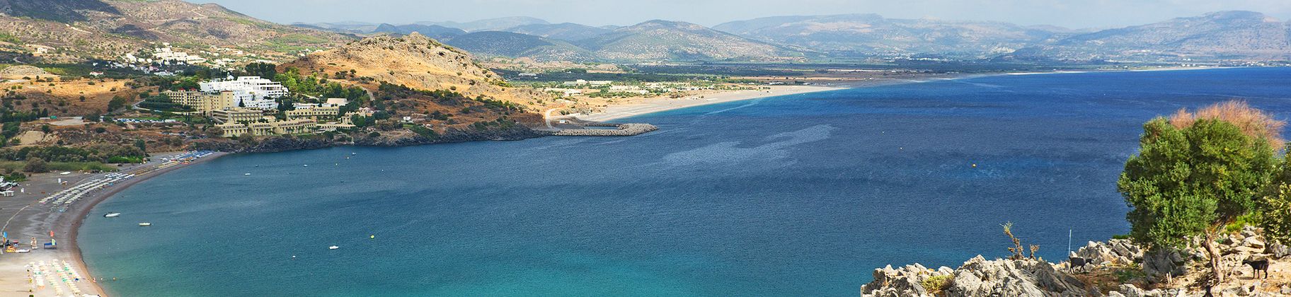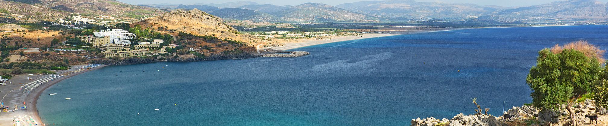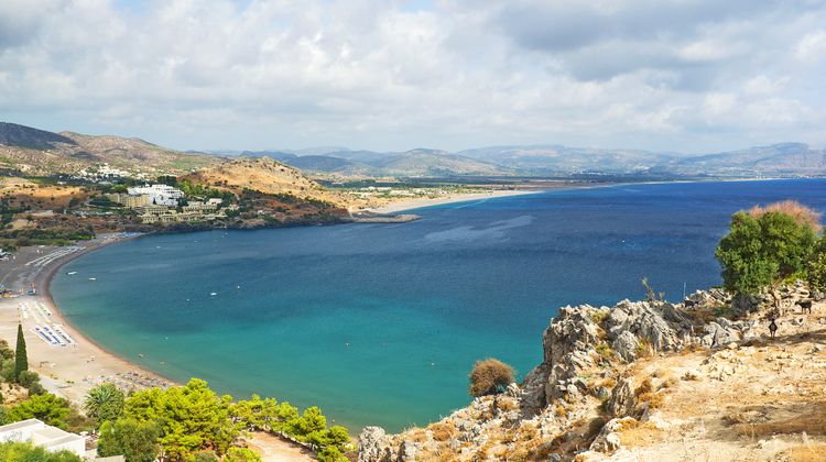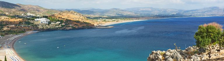 La bourgade de Kalathos, comprenant quelques tavernes et supermarchés, s‘étend à 6 km au nord de Lindos.