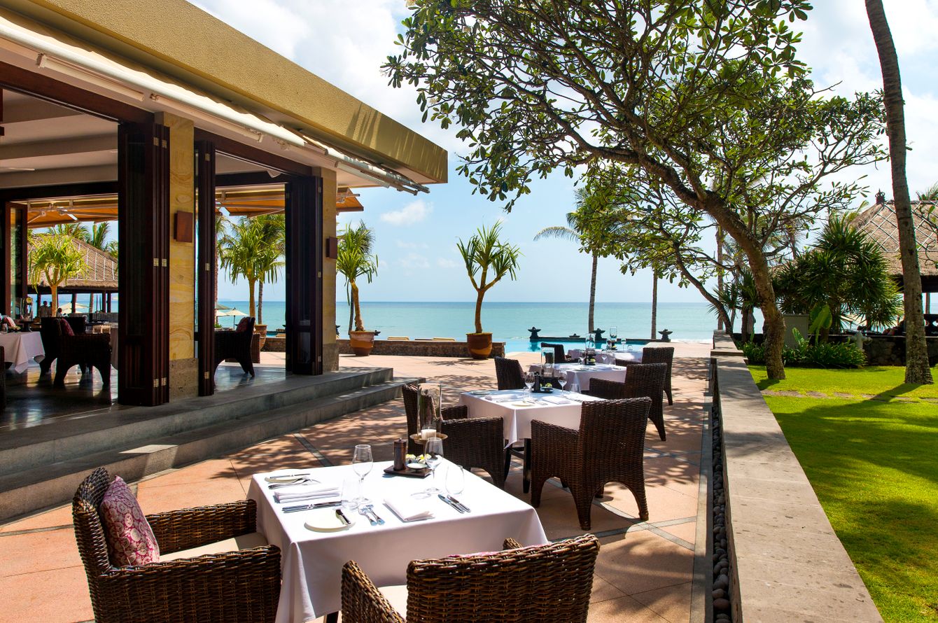 Élégant restaurant semi-ouvert dans le bâtiment principal (cuisine européenne avec une touche asiatique). Salon The Club réservé aux hôtes des villas: petit restaurant raffiné avec vue piscine. Repas légers au bar de piscine près de la plage. Pour occasions particulières, lit à baldaquin balinais dans le parc avec magnifique vue sur la mer. Bibliothèque et boutique à la réception. Bel espace piscine avec 3 bassins et vue sur la plage et l’océan. Bar à champagne Ocean proposant vins mousseux français soigneusement sélectionnés avec canapés. Cabine de soins vue mer au The Spa at The Legian. Internet sans fil gratuit dans tout l’hôtel.
