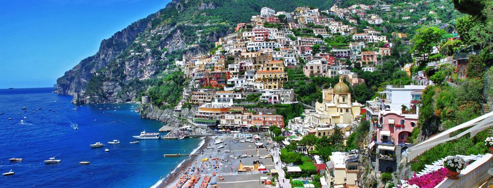 L'ancienne localité maritime de Positano est connue pour sa situation privilégiée sur la côte amalfitaine. Elle s'étend en terrasses sur plusieurs coteaux abrupts sur lesquels sont accrochées des maisons et des villas aux couleurs pastel conférant au lieu un charme féérique. Dans la vieille ville, de nombreuses marches et ruelles aux boutiques chics descendent en serpentant jusqu'à la plage. Deux jolies plages de galets et le port pittoresque de Marina Grande s'offrent aux visiteurs. Sa vue sur la mer, sa végétation luxuriante de citronniers et de bougainvilliers ainsi que sa situation exceptionnelle font de Positano l'un des endroits les plus appréciés de la côte amalfitaine.