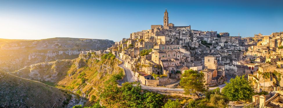 C’est dans la province de la Basilicate, au sud de l'Italie, que se trouve Matera, l'une des villes les plus anciennes et les plus captivantes du pays. Un dédale de rues étroites et sinueuses, de places accueillantes et d'églises rupestres, ainsi que des grottes classées au patrimoine mondial de l'UNESCO, confèrent à la ville un charme unique. Grâce à son riche paysage culturel typiquement italien, Matera a été promue première «capitale européenne de la culture» du sud de l'Italie en 2019.