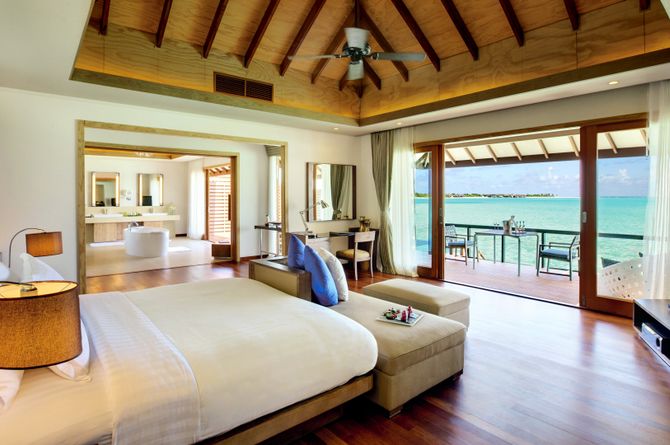 Toutes les villas ont bain, douche, WC, sèche-cheveux; TV, téléphone, Internet sans fil gratuit, minibar, coffre-fort, bouilloire, climatisation et ventilateur. Les villas Sunset Beach (176 m2) offrent en sus un salon/chambre à coucher séparé ainsi qu'une salle de bain à ciel ouvert avec bain à remous et terrasse avec patio et vue sur la plage et le parc. Les Beach Residence (550 m2) se trouvent directement sur la plage et disposent d'un grand salon, d'une armoire-dressing, d'une baignoire avec bain à remous; terrasse avec piscine privée et pavillon repas dans le jardin. Maximum 3 adultes ou 2 adultes et 2 enfants. Les villas Deluxe Water (196 m2) sont sur pilotis et offrent outre l'aménagement de base, une terrasse avec piscine privée et d'un accès direct au lagon. Les villas Ocean (300 m2) ont un aménagement identique à celui des villas Deluxe Water mais sont plus spacieuses avec en sus un service de majordome 24 h/24 et plus d'intimité. Terrasse avec vue piscine ou mer. Les villas Family (700 m2) ont en sus, armoire dressing, service de majordome 24 h /24, douche extérieure dans le jardin privatif et doté d'une piscine. Maximum 3 adultes ou 2 adultes et 2 enfants. Les villas Family 2 Bedroom (1200 m2) ont le même aménagement que les villas Family mais avec une chambre et salle de bain en plus, armoire dressing, service de majordome 24 h /24, tronçon privé de plage et coin repas extérieur. Terrasse avec vue mer. Maximum 4 adultes ou 2 adultes et 2 enfants. Les Hideaway Palace (1420 m2) à l'aménagement identique, offrent en tout 3 chambres à coucher avec chacune leur salle de bain, salle à manger séparée, salle de bain intérieure et extérieure, armoire dressing, service de majordome 24 h /24 et terrasse avec piscine privée et vue sur le lagon doté d'un banc de sable. Maximum 6 adultes ou 4 adultes et 2 enfants.