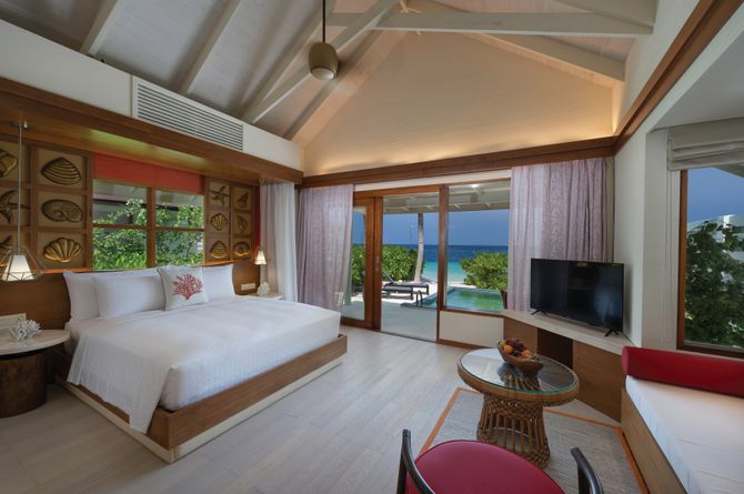 Décorées dans des tons boisés et lumineuses, les villas SunNest Beach Pool (62 m2) ont salle de bains semi-ouverte avec baignoire, douche, WC, sèche-cheveux, peignoir et chaussons, téléphone, TV, wifi gratuit, bouilloire, minibar, coffre-fort, climatisation, terrasse avec piscine privée au bord de la plage. Les villas Nest Water (75 m2), construites sur pilotis au-dessus de l’eau, ont fenêtre dans le sol en plus et terrasse avec accès direct à la mer. Les villas SunNest Water Pool (75 m2), aménagées de la même manière que les villas Nest Water, ont piscine sur la terrasse.