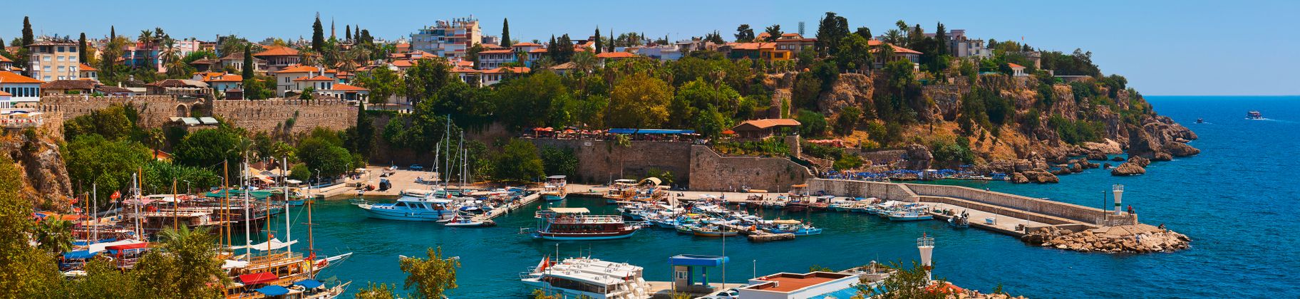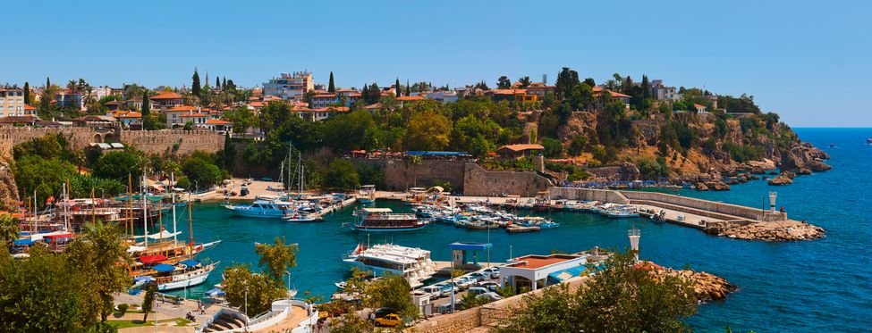 L’emplacement de la ville placée sur un promontoire rocheux au-dessus de la mer est unique. Antalya est souvent aussi surnommée la «Perle de la Riviera turque». Cette qualification n’est pas du uniquement à sa situation légendaire mais aussi à sa remarquable vieille ville. Antalya est de plus en plein essor et s’est entre-temps transformée en mégapole. Grâce à cette croissance rapide de nombreuses cités nouvelles se sont formées dans l’agglomération avec de bonnes infrastructures et de bonnes dessertes vers le centre. Surtout dans la partie à l’est de la ville, le long de la côte rocheuse plusieurs nouveaux hôtels ont été construits.